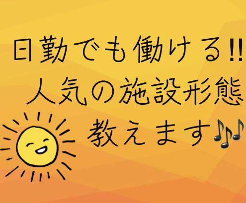 日勤で働きたい方・仕事復帰したい方必見☆どの施設形態が自分に合っているか、特徴をご紹介します。