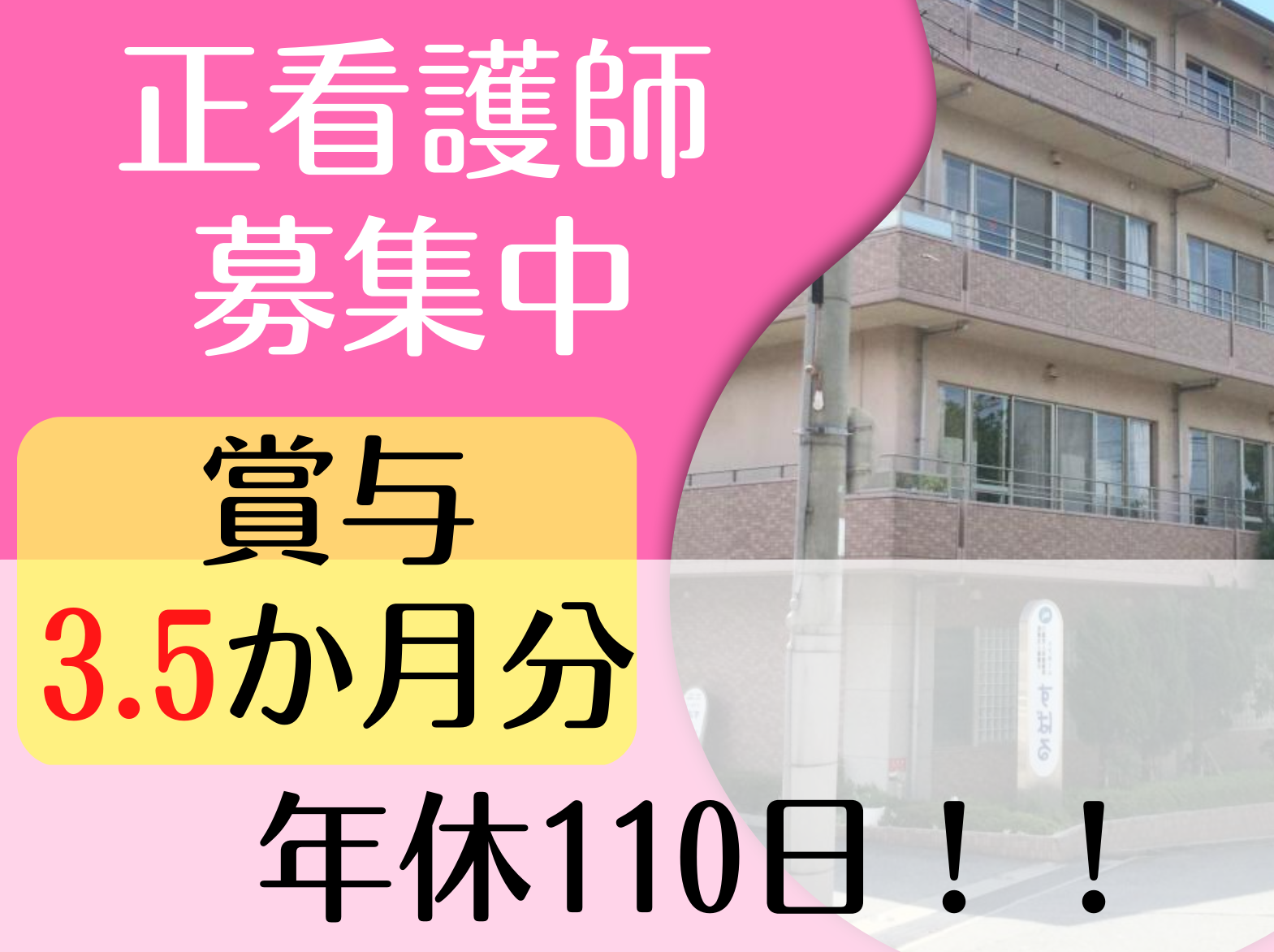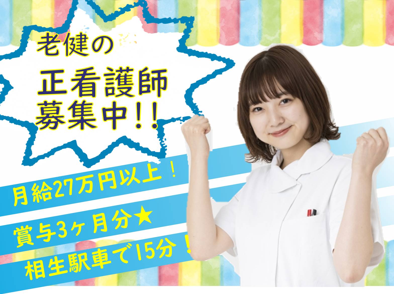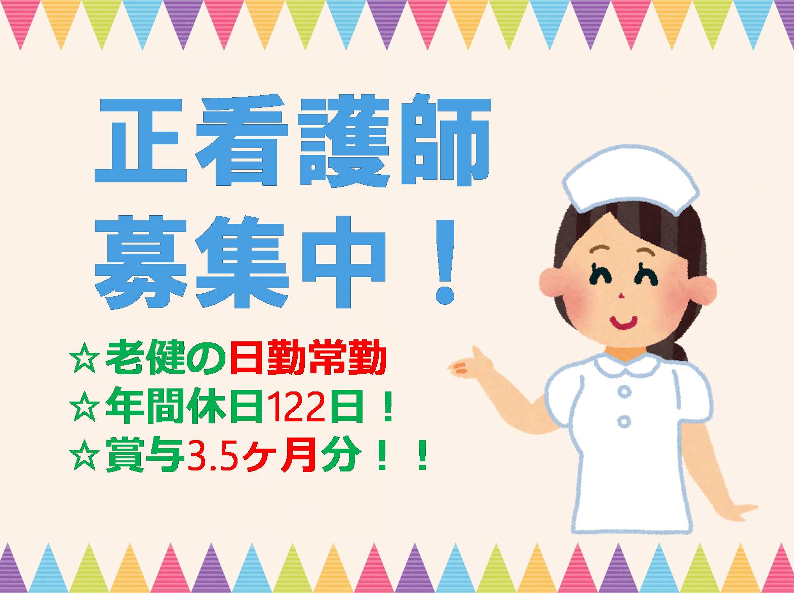 【正社員】【相生市】老健の正看護師募集!!賞与3ヶ月分!日勤のみ可能!