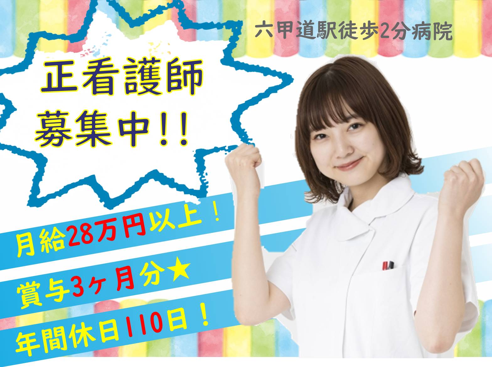 【正社員】【灘区】六甲道駅徒歩2分!賞与3ヶ月分!病院の正看護師募集♪