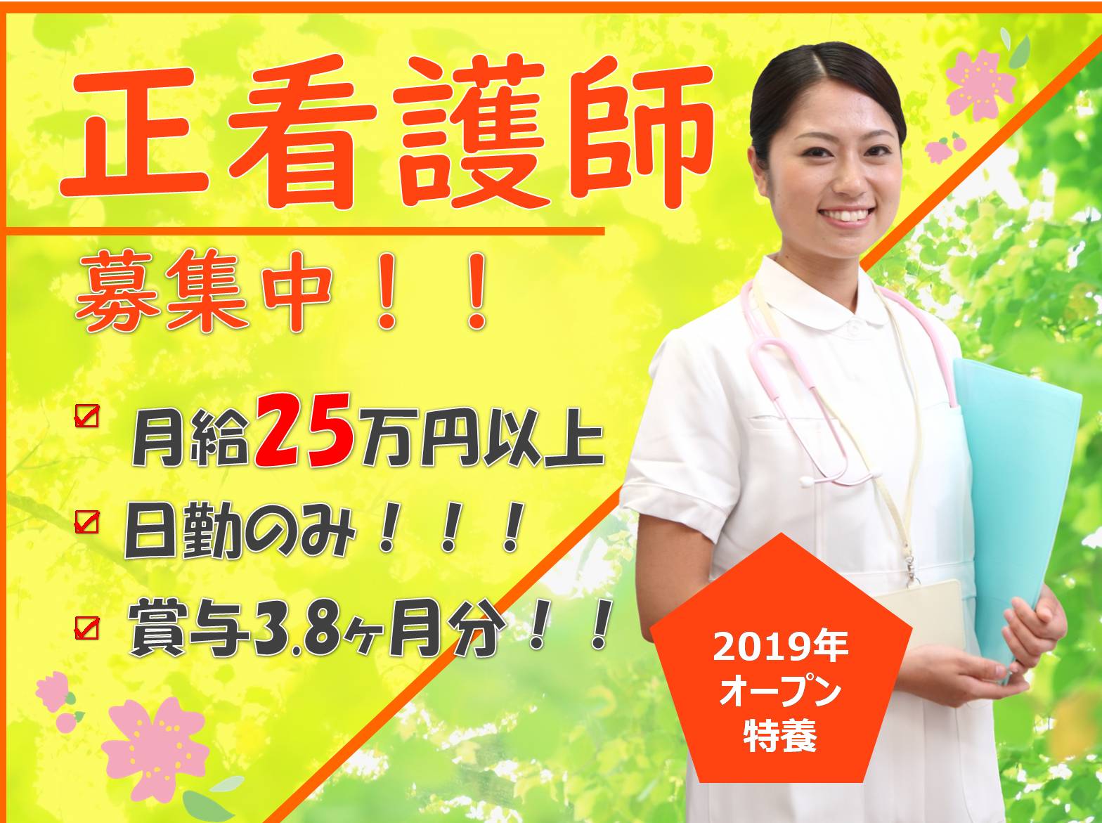 【正社員】【東灘区】特養の正看護師募集!!賞与3.8ヶ月分!!日勤のみ!オンコール月10回!!