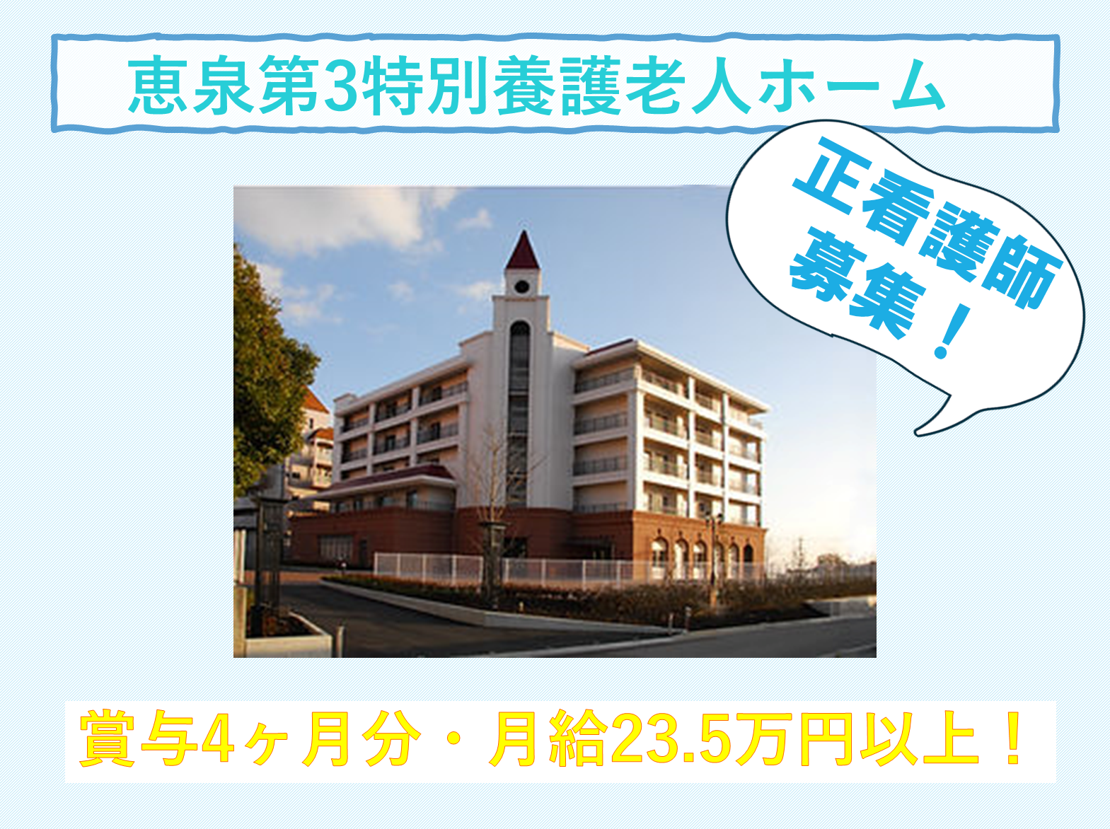 【正社員】【明石市】☆賞与4ヶ月分☆恵泉 第3特別養護老人ホームの正看護師募集!!