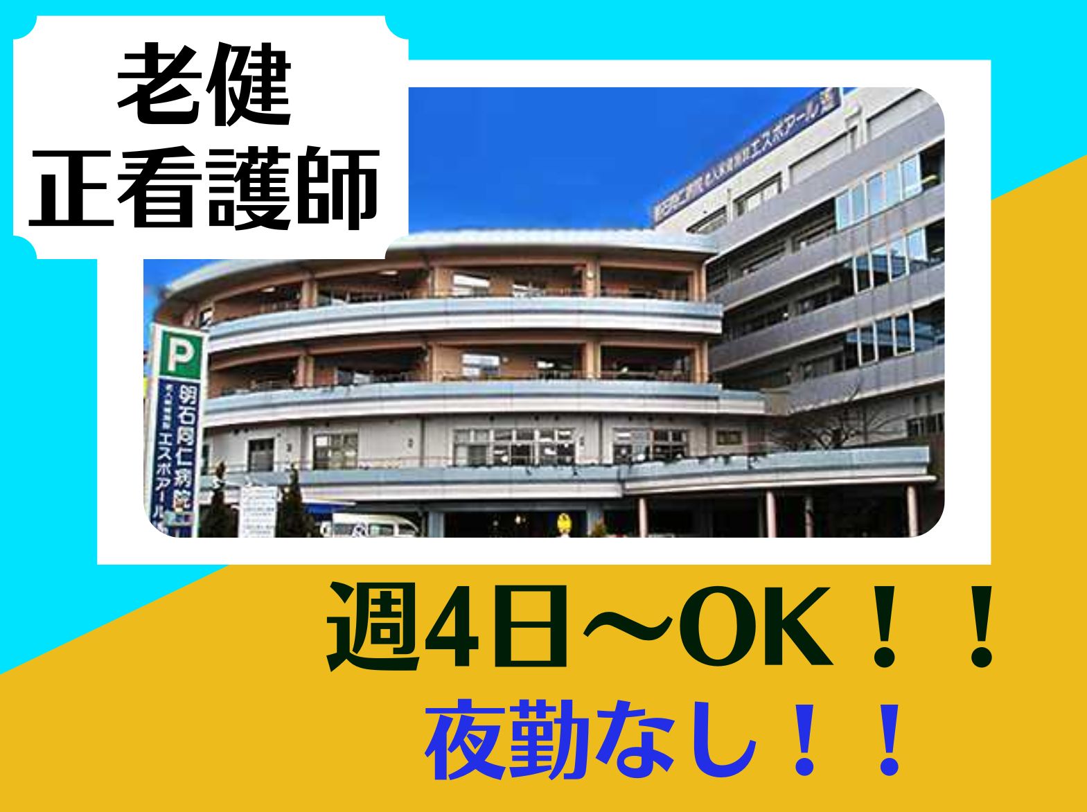 明石市/老健/正看護師/賞与あり/時給1500円以上/週4日~OK/夜勤なしアクセス