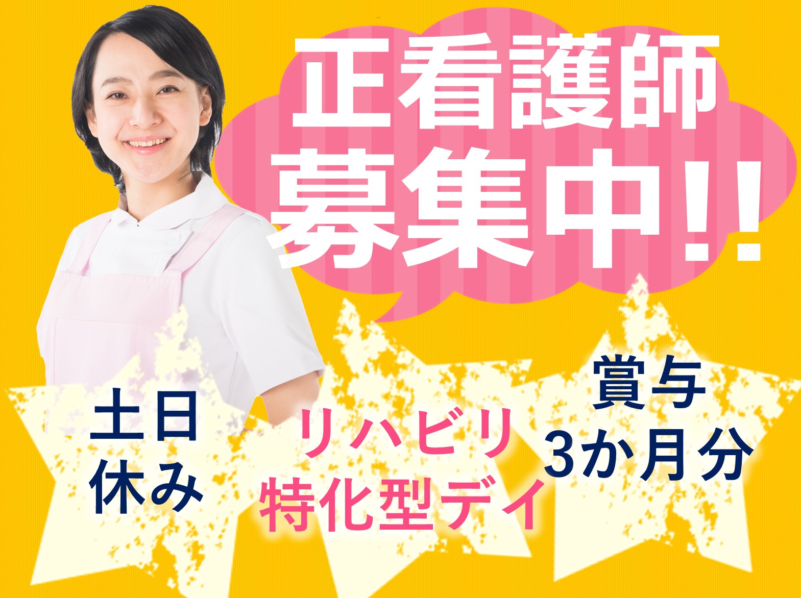 リハビリ特化型デイ/正看護師/月給25万円以上/賞与3か月分/土日休み/未経験でも可能雇用形態
