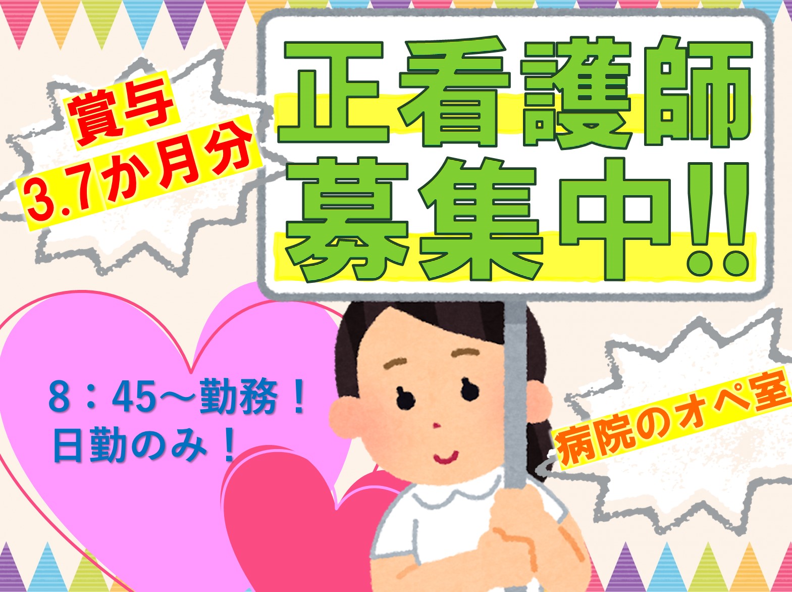 【正社員】【明石市】病院のオペ室の正看護師募集!!日勤のみ!年間休日113日!