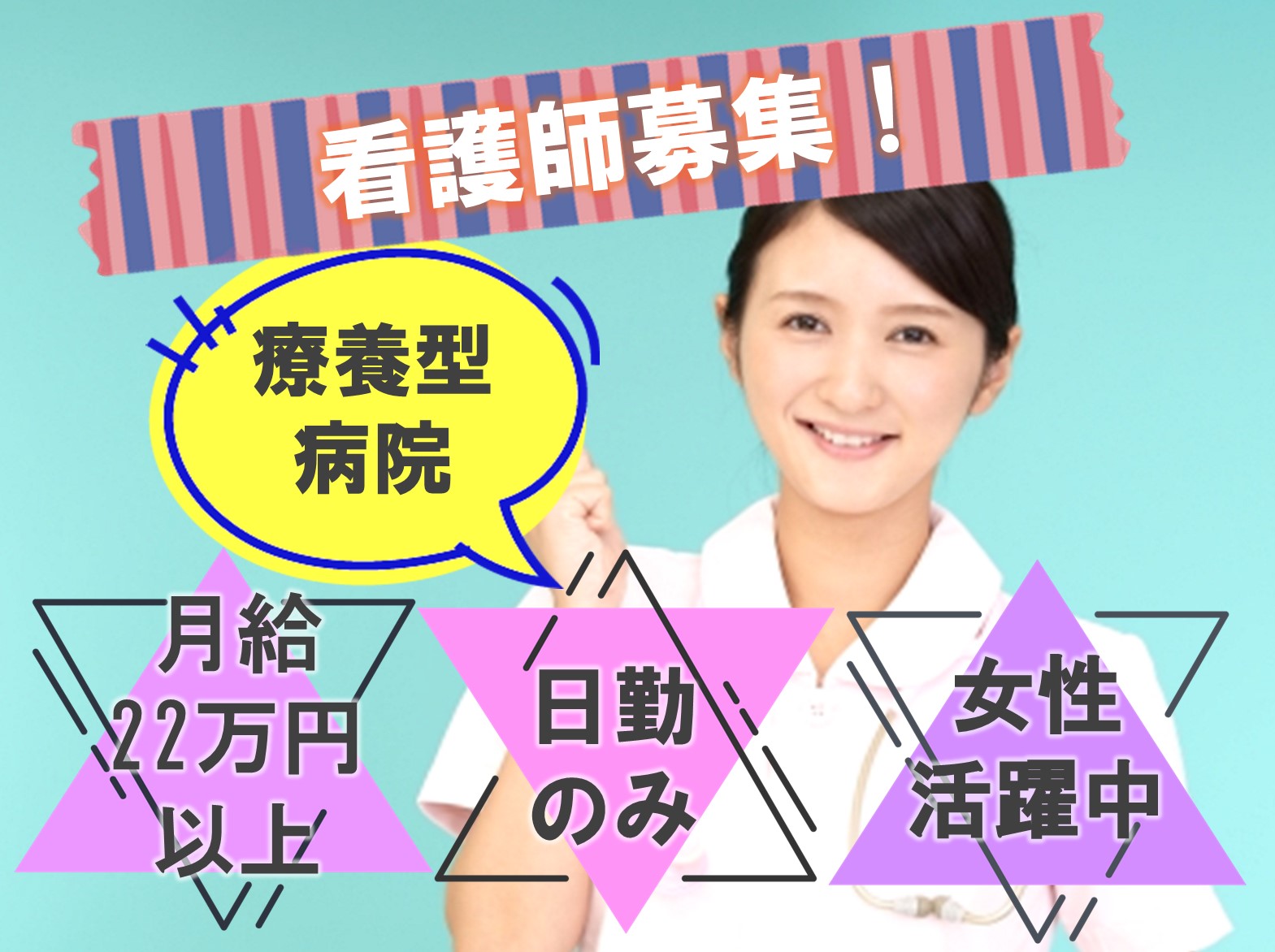 西区療養型病院の看護師/月給22.5万円以上/日勤のみ/年休104日/女性歓迎アクセス