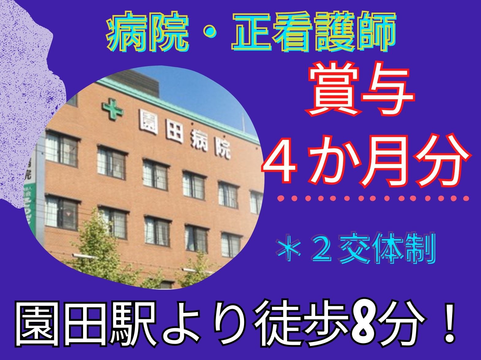 【正社員】【尼崎市】 園田病院の正看護師!!賞与4か月分!!2交代制!療養型病院!