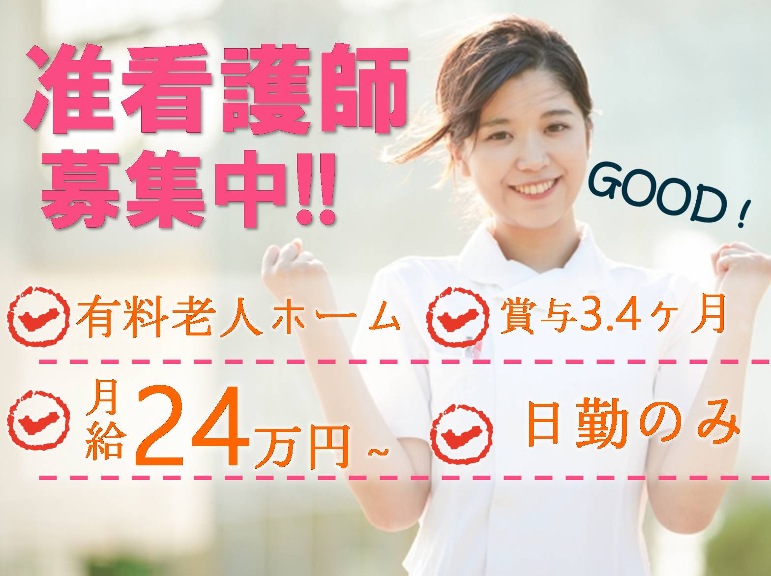 【正社員】【東灘区】魚崎駅徒歩5分有料老人ホームの准看護師募集!!賞与3.4ヶ月分!女性歓迎!日勤のみ