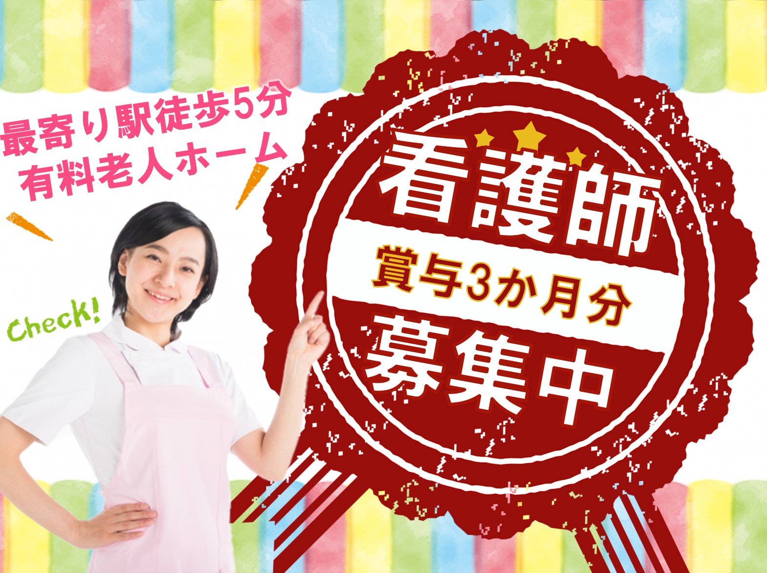 東灘区/有料老人ホームの正看護師/賞与3か月分/月給24万円以上/夜勤なしアクセス