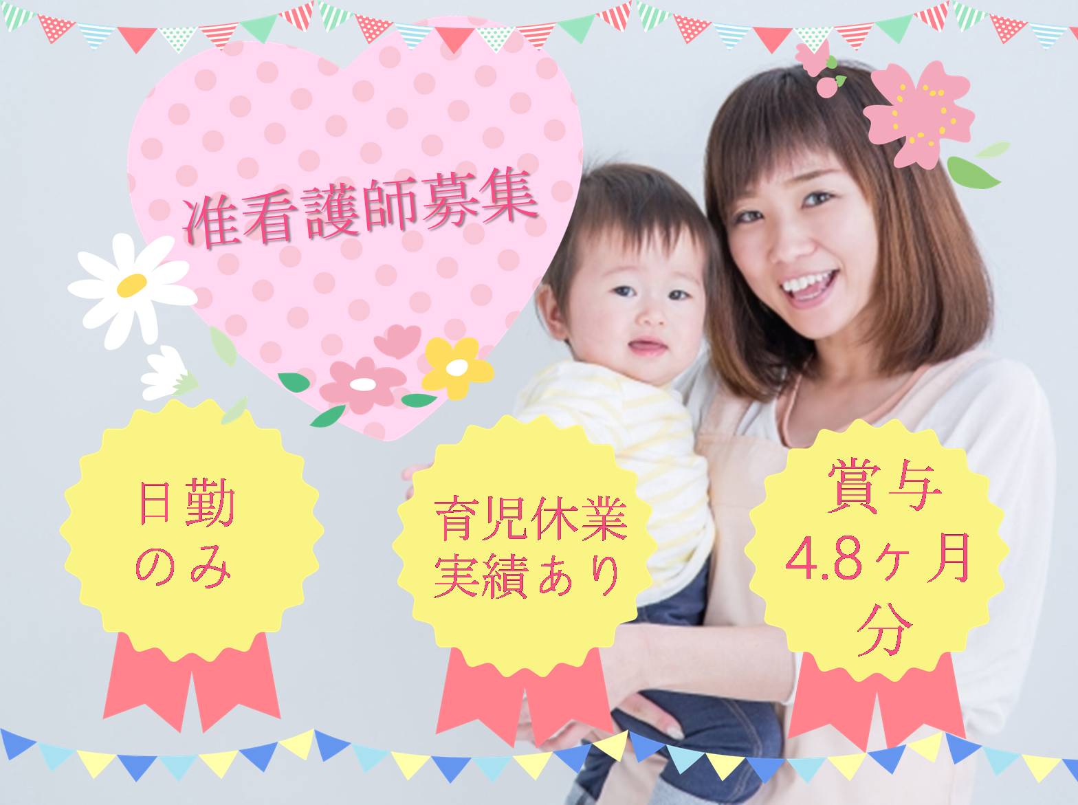 西区外来准看給与20万から27万円で賞与3.4ヵ月で年間休日110日アクセス