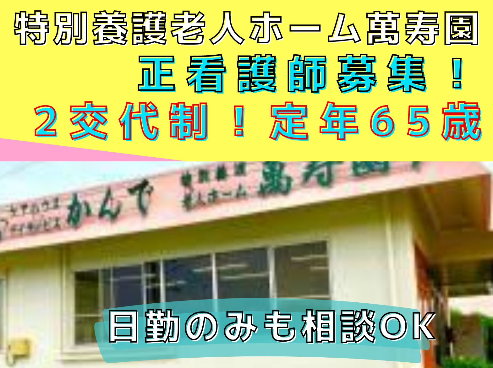 ★急募★【正社員】【西区】 従来型特養、萬寿園の看護師募集!!賞与3か月◎朝・9時半出勤でゆっくり(^^♪