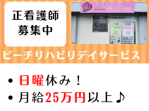 【正社員】【西区】月給25万円以上☆日曜休み!!ピーチリハビリデイサービスの看護師の募集!!