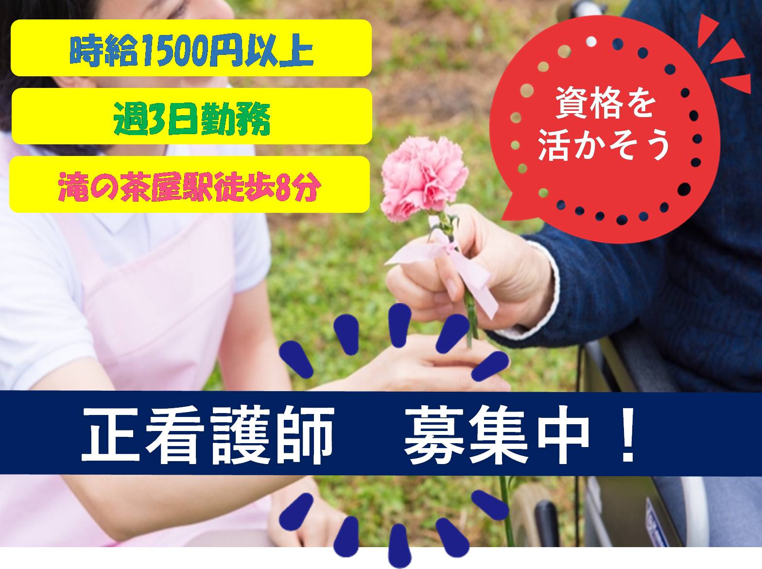 駅チカの老人ホームの正看護師で時給1500円以上週3日勤務土日勤務歓迎アクセス