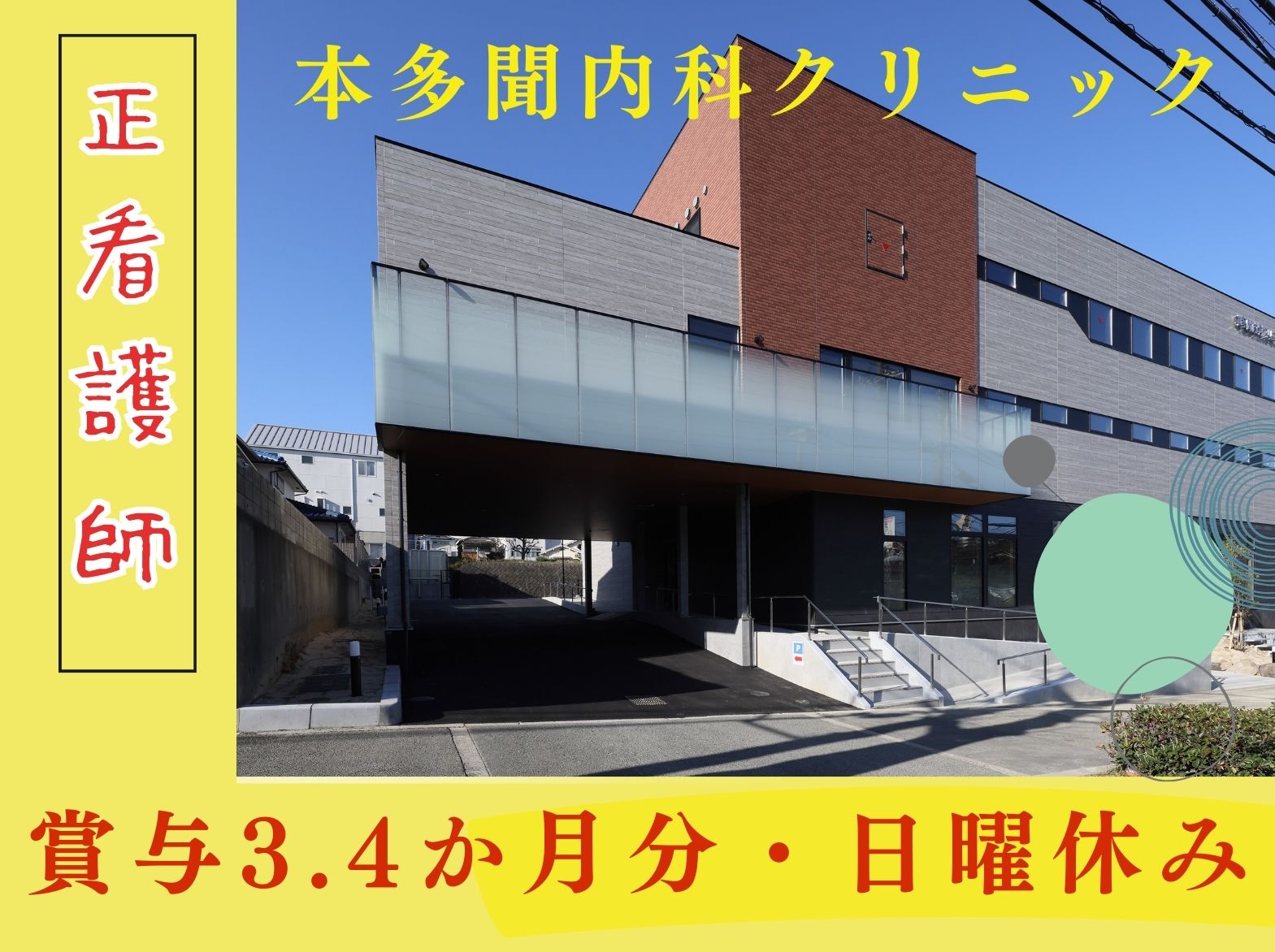 【正社員】【垂水区】本多聞内科クリニック看護師募集!賞与3.4か月分!年休110日!
