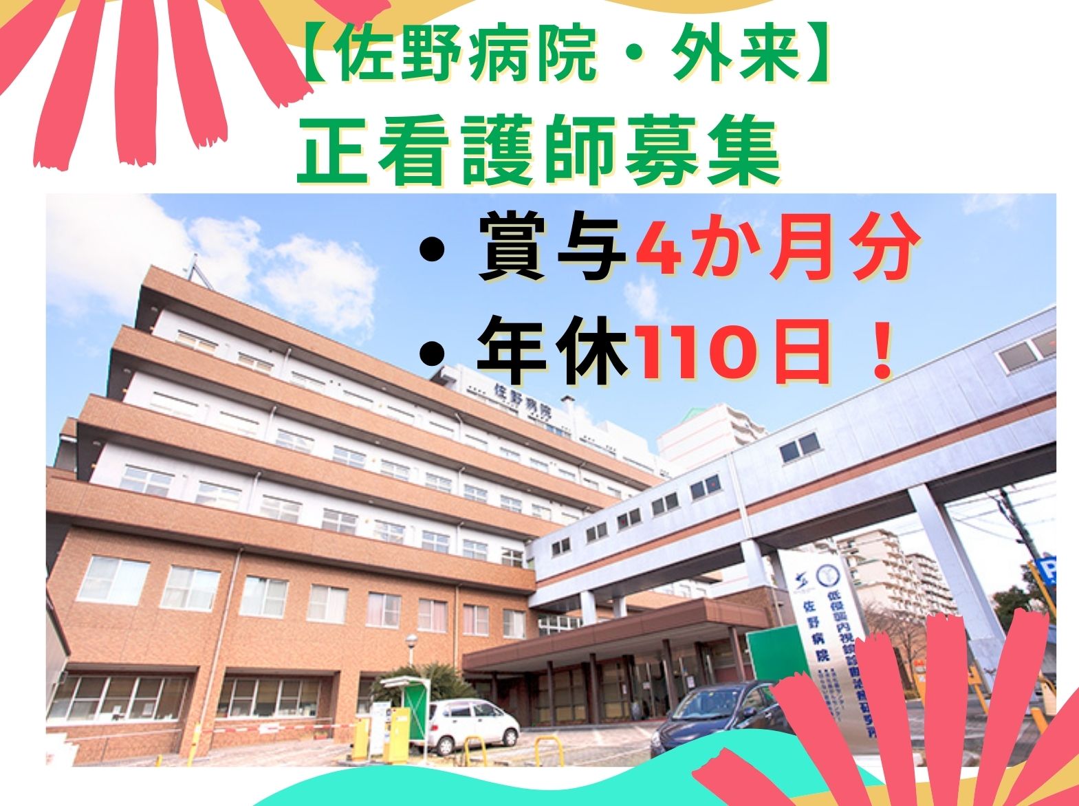 【正社員】【垂水区】佐野病院(外来)の正看護師募集!!賞与4か月分!!当直業務あり!