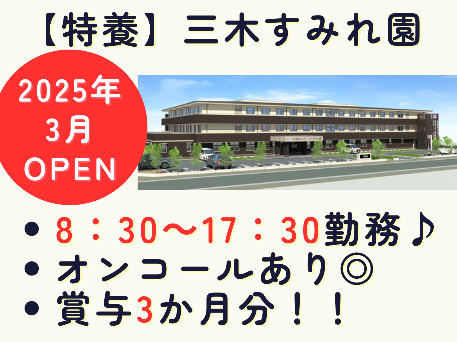 【正社員】【三木市】2025年3月OPEN予定♪三木すみれ園の正看護師!8:30~17:30勤務♪オンコールあり◎