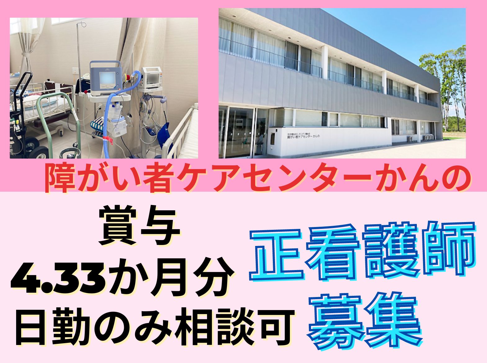 【正社員】【加古川市】2交代制◎障がい者ケアセンターかんの正看護師募集!!賞与4.3ヶ月分♪月給26万円以上!