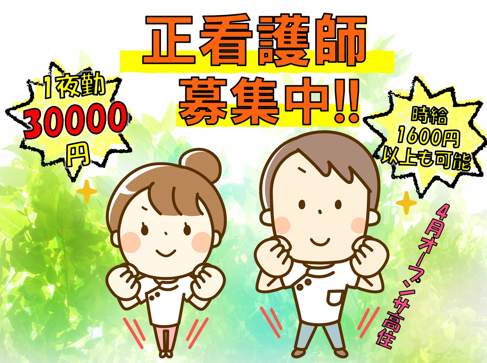 【パート】【西区】4月オープンサ高住の正看護師募集♪週4日以上勤務!1夜勤3万円以上!