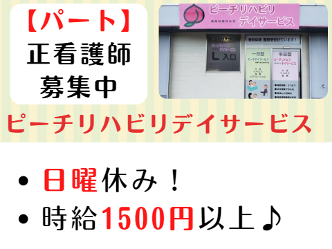 【パート】【西区】ピーチリハビリデイサービスの正看護師募集!!日曜休み!!時給1500円以上!!