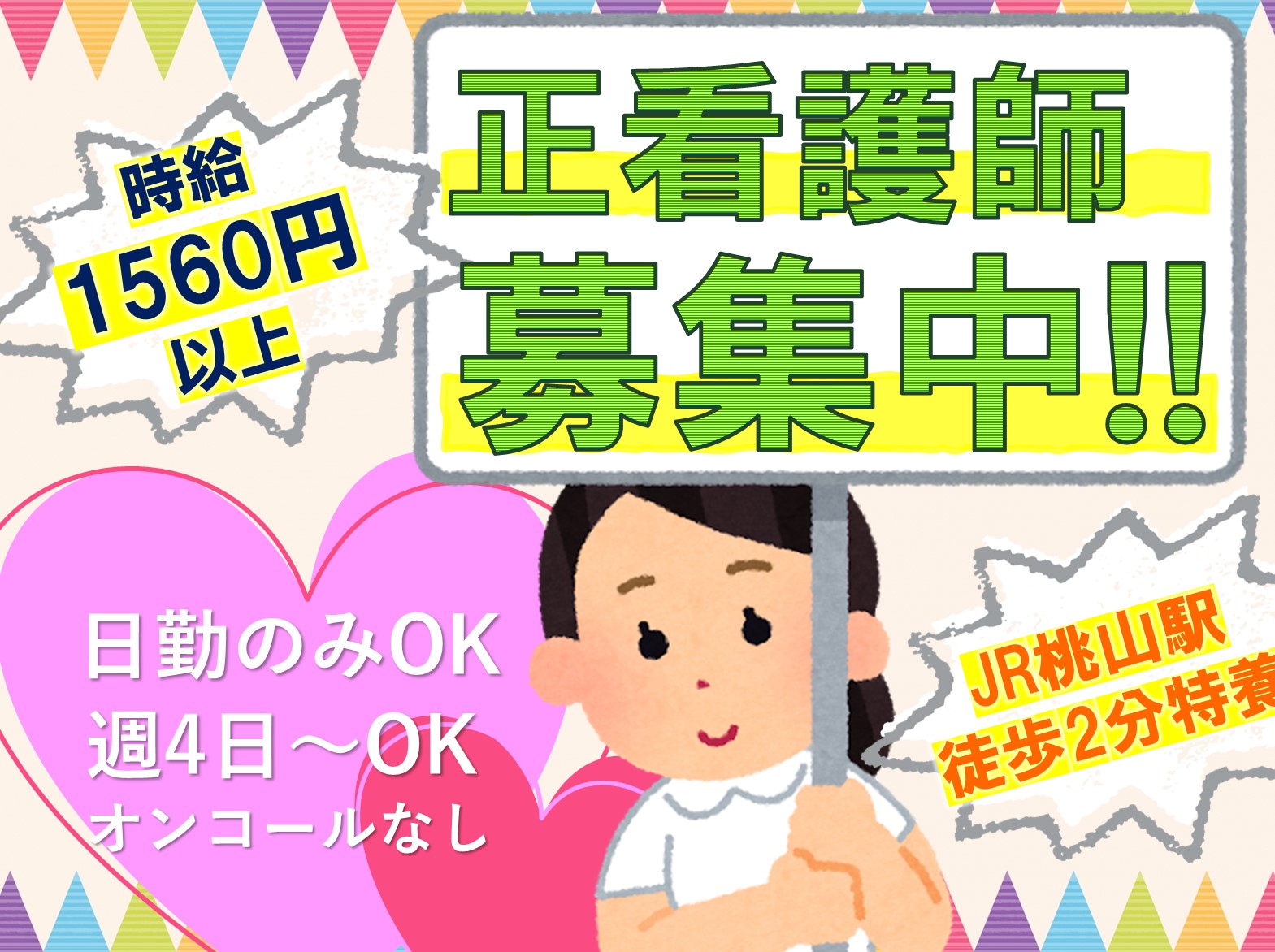 【パート】【京都市伏見区】JR桃山駅徒歩2分特養の正看護師募集!!日勤のみOK!!週4日~OK!オンコール業務なし!