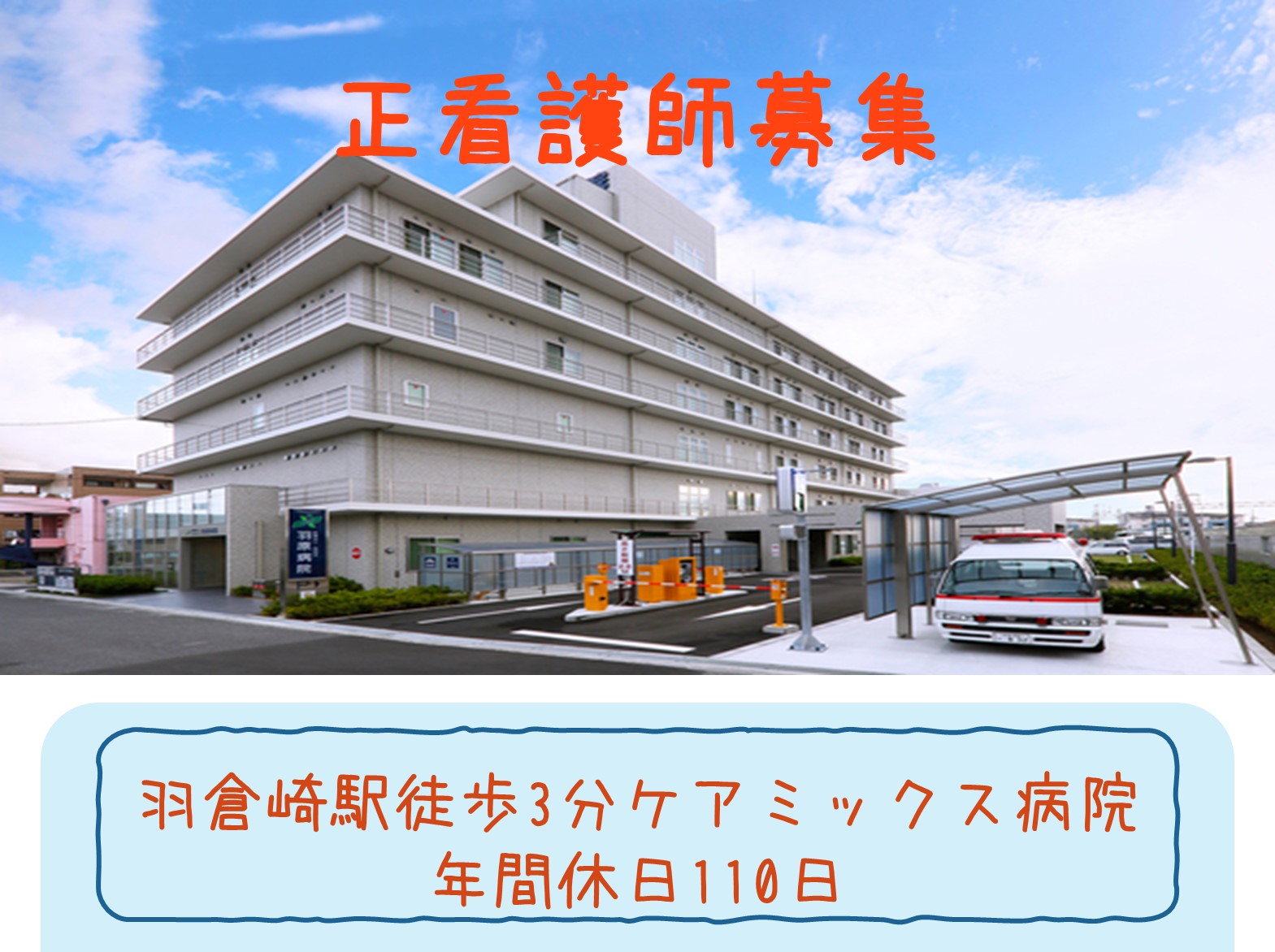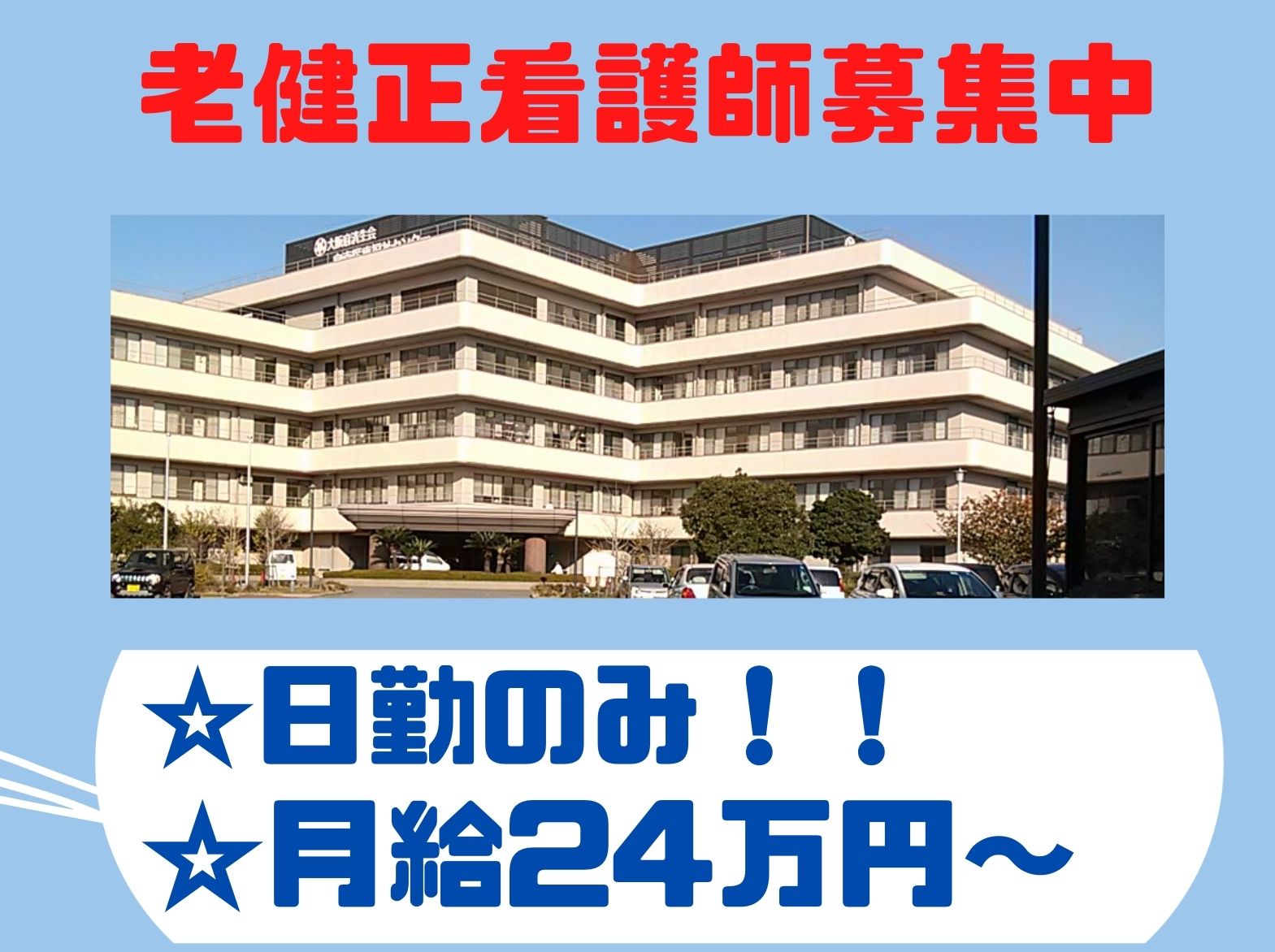 【正社員】【泉佐野市】羽原病院の正看護師募集!!羽倉崎駅より徒歩3分!年間休日110日!