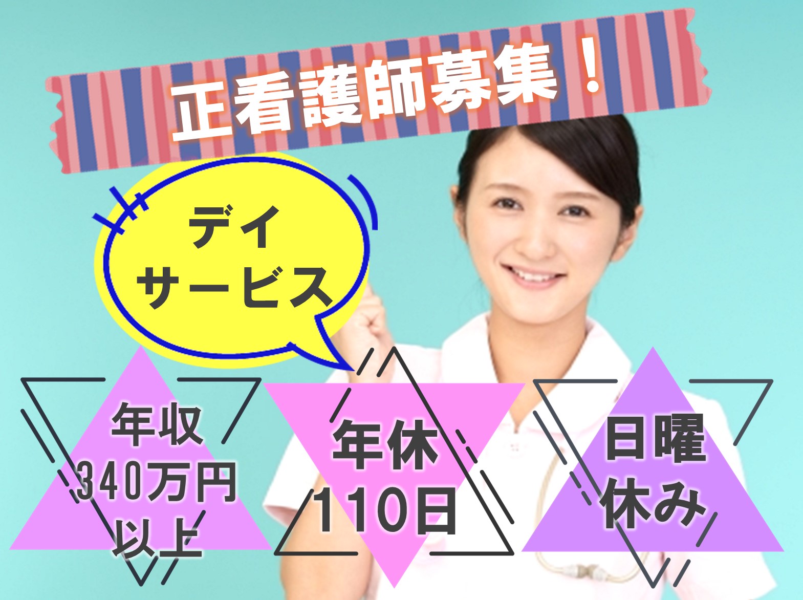 【正社員】【岸和田市】デイの正看護師募集!!年収340万円以上!日曜休み!!管理職大募集!