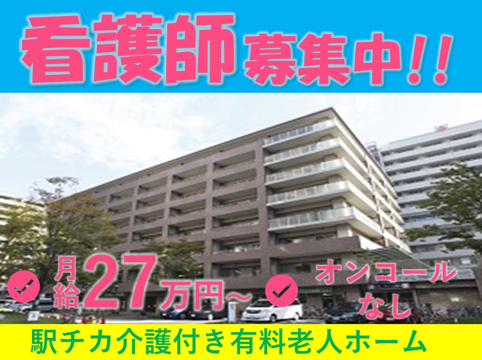 大阪市住吉区/介護付き有料老人ホーム/正看護師/賞与3.5か月分/月給27万円以上/オンコールなしアクセス
