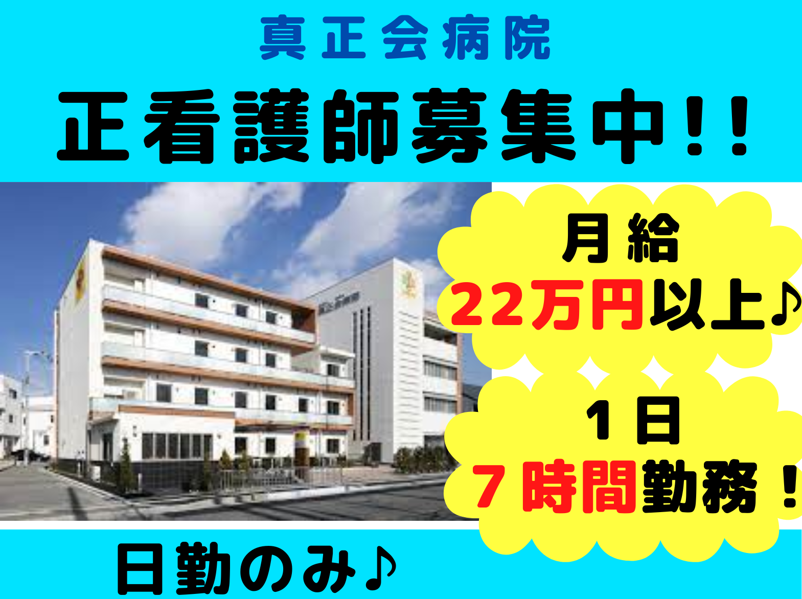 【正社員】【豊中市】真正会病院の正看護師募集!!日勤のみ!賞与4か月分♪