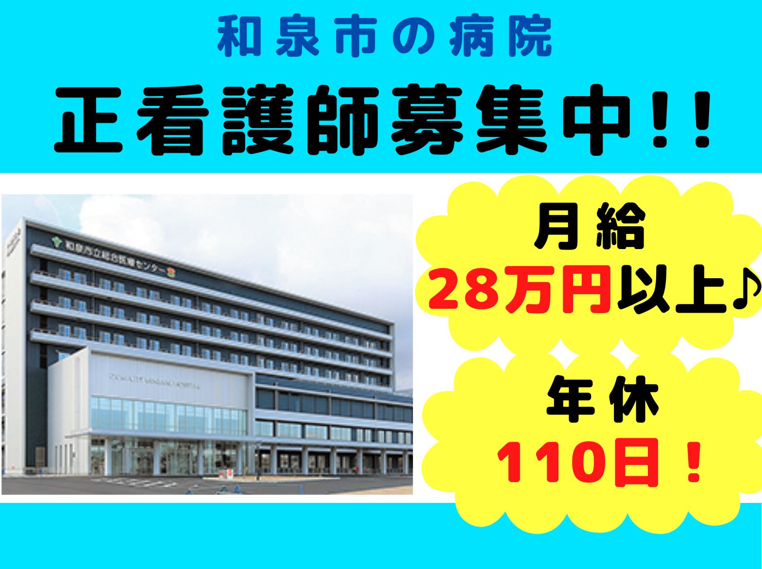 【正社員】【和泉市】和泉市立 総合医療センターの正看護師募集!!年間休日110日!!賞与3.3か月分!!託児所あり!