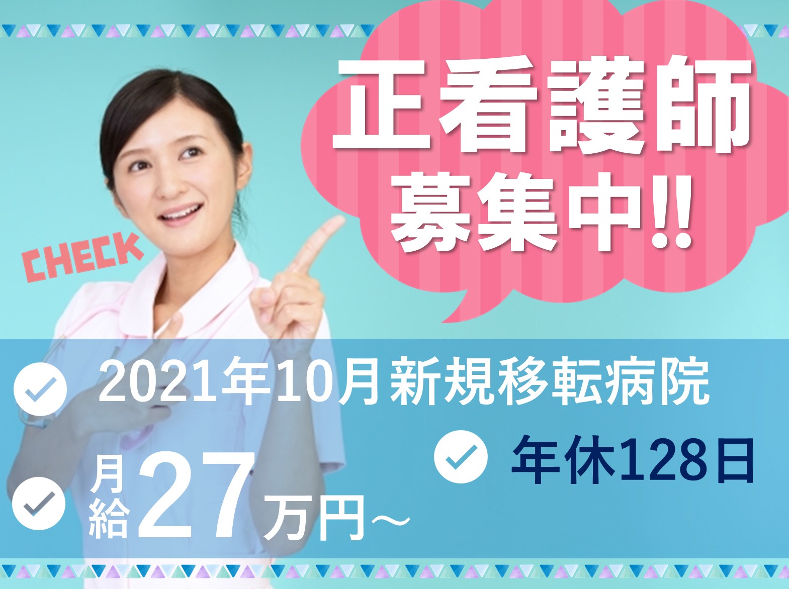2021年10月新規移転ケアミックス病院/賞与3.4か月分/月給27万円以上/年休128日アクセス