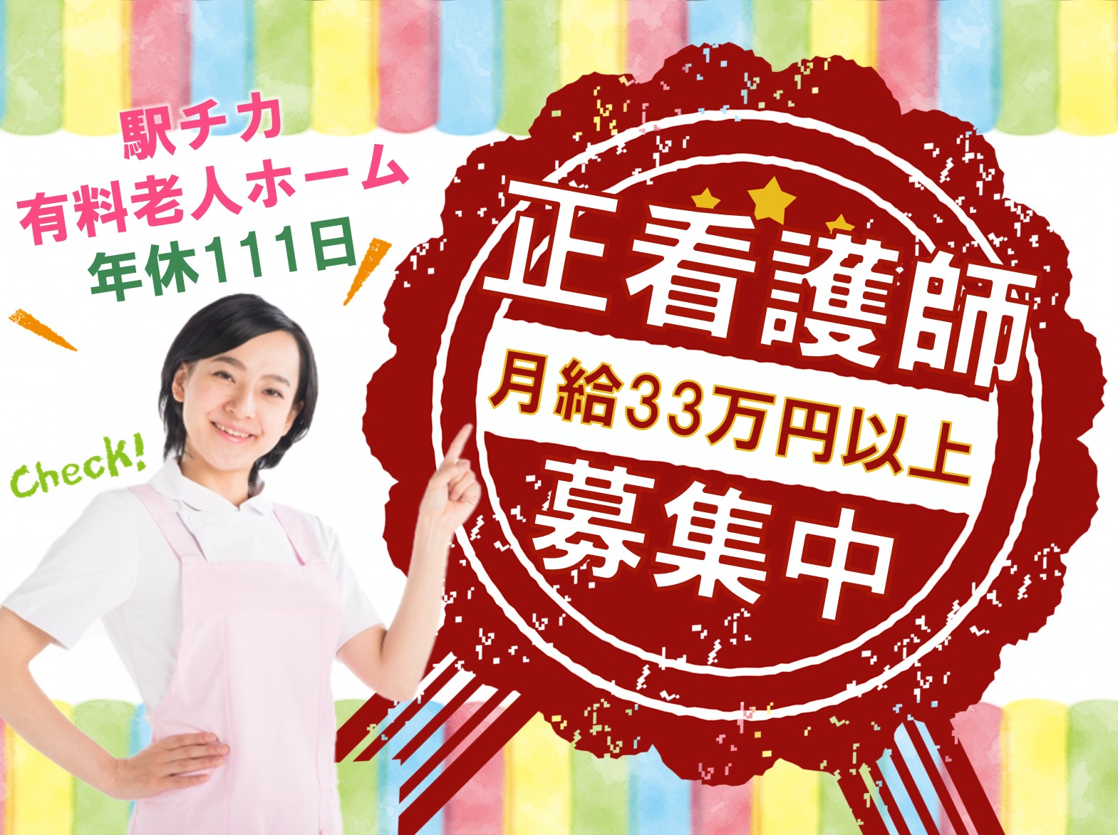 【正社員】【東淀川区】「上新庄駅」から徒歩約7分有料老人ホームの正看護師募集!!月給33万円以上(^^)オンコールあり