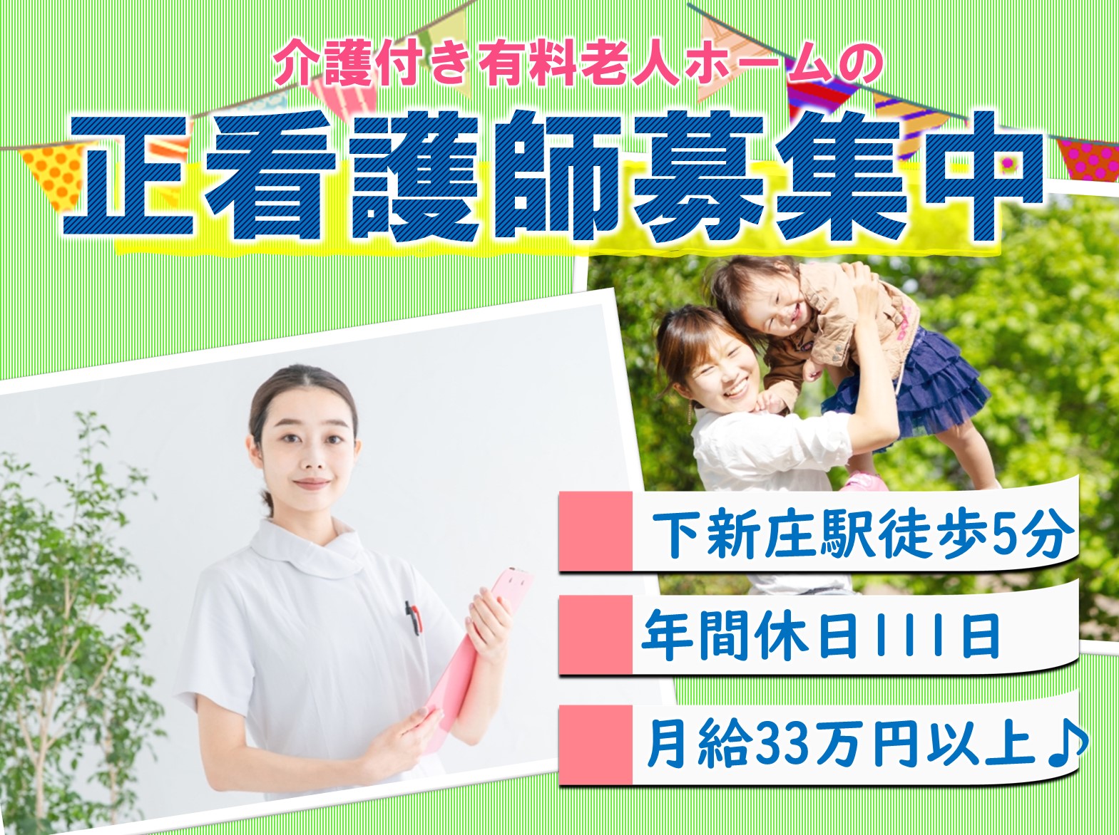 【正社員】【東淀川区】有料老人ホームの正看護師募集!!月給33万円以上!「下新庄駅」から徒歩5分♪オンコールあり