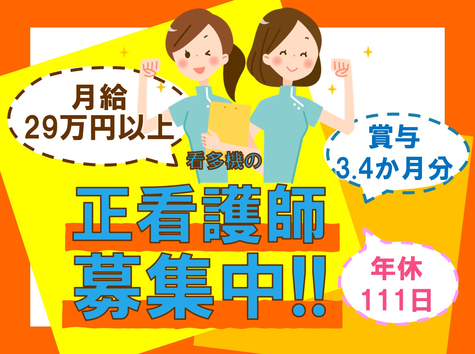 看多機の正看護師で賞与3.4か月分月給29万円以上の年休111日夜勤必須アクセス