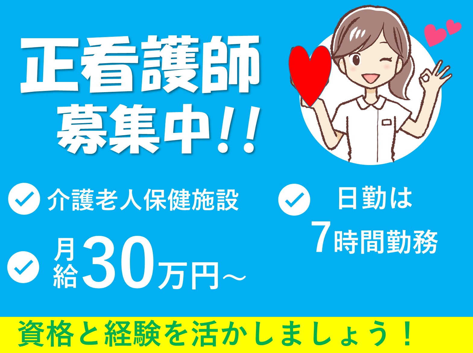 【正社員】【大阪市平野区】老健の正看護師募集!!月給30万円以上!夜勤手当1回10,000円!地下鉄谷町線 長原駅駅 から徒歩 7分!