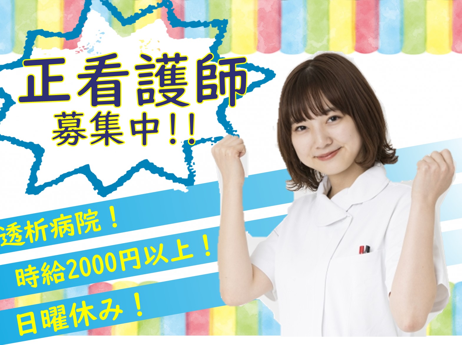 【パート】【大阪市住之江区】透析病院の正看護師募集!!日曜休み!時給2000円以上!!