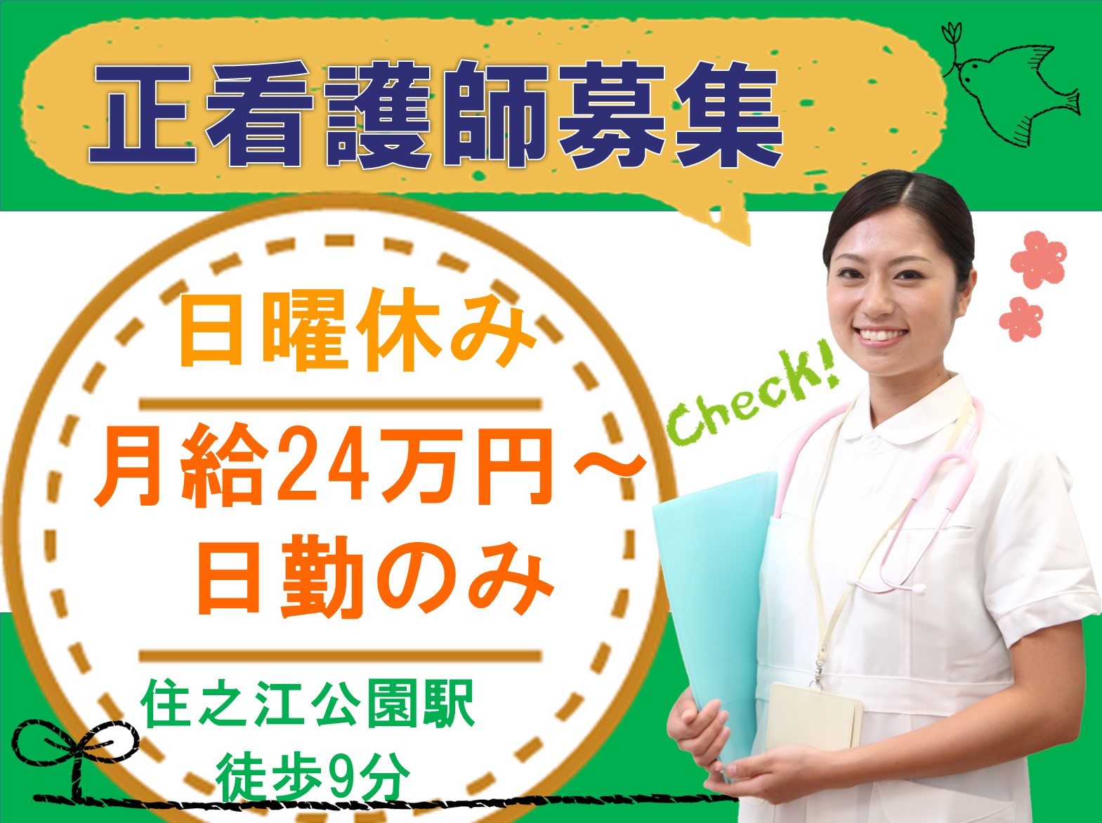 【正社員】【大阪市住之江区】デイサービスの正看護師募集!!日曜休み!日勤のみ!住之江公園駅徒歩9分!マイカー通勤OK!